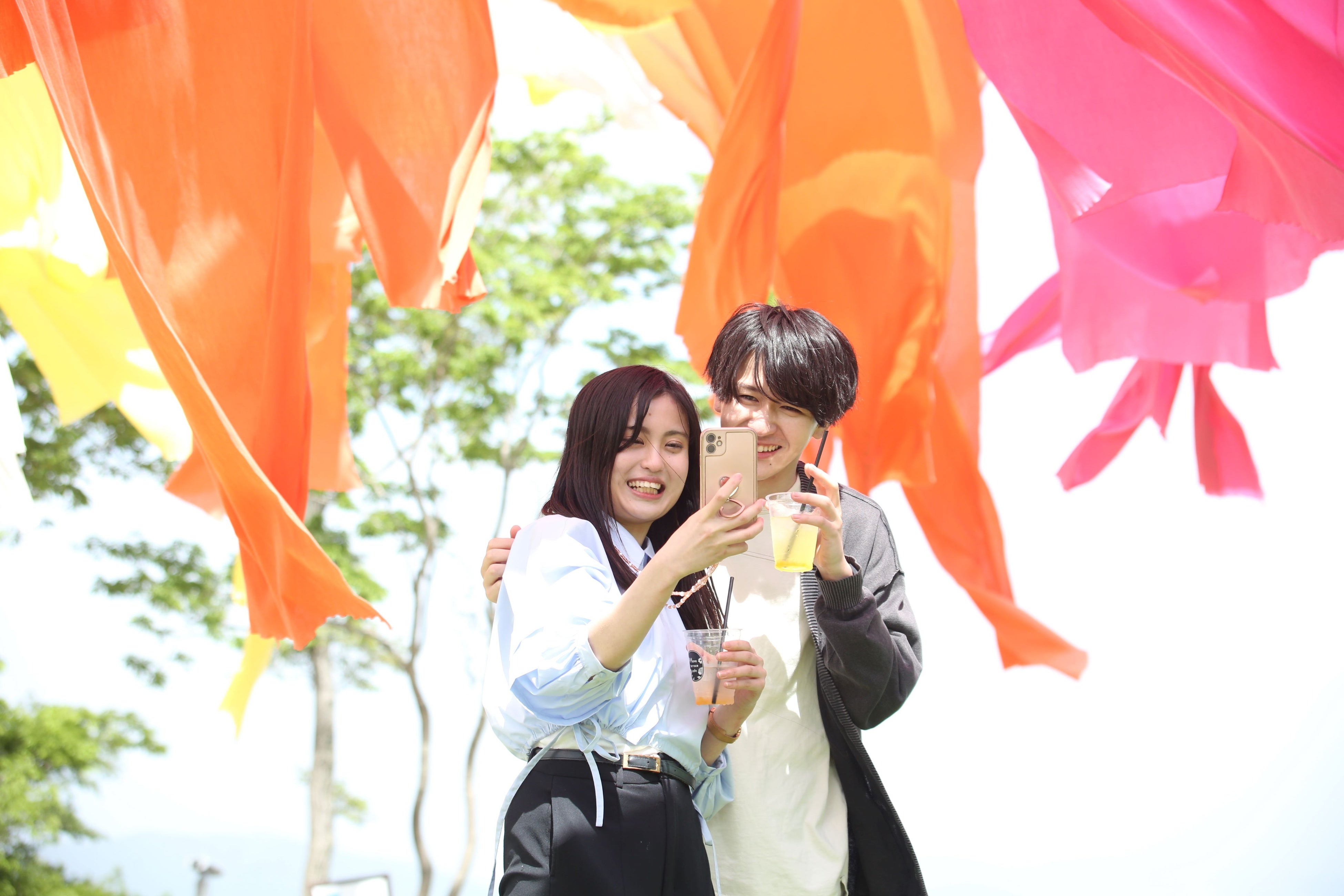 風鈴トンネルを抜けると、高島ちぢみの虹のカーテンへ導かれます。