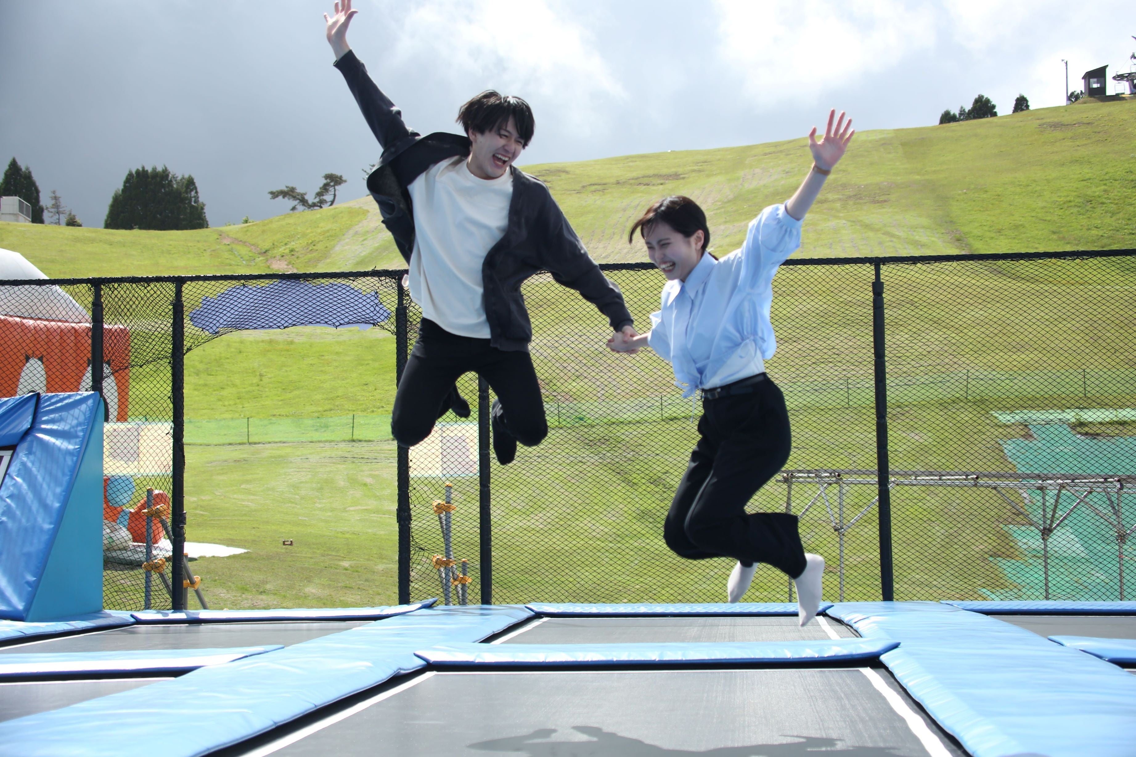 プレイゾーンでは、巨大トランポリンや、各種遊具、人工芝でのソリ遊びも可能です。