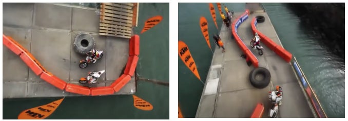 連結した『ウォーター・ケーブル・バリアー』は最大30度の角度まで曲げることができ、複雑な曲線部にも対応が可能です。最小4メートルの設置半径を実現しています。