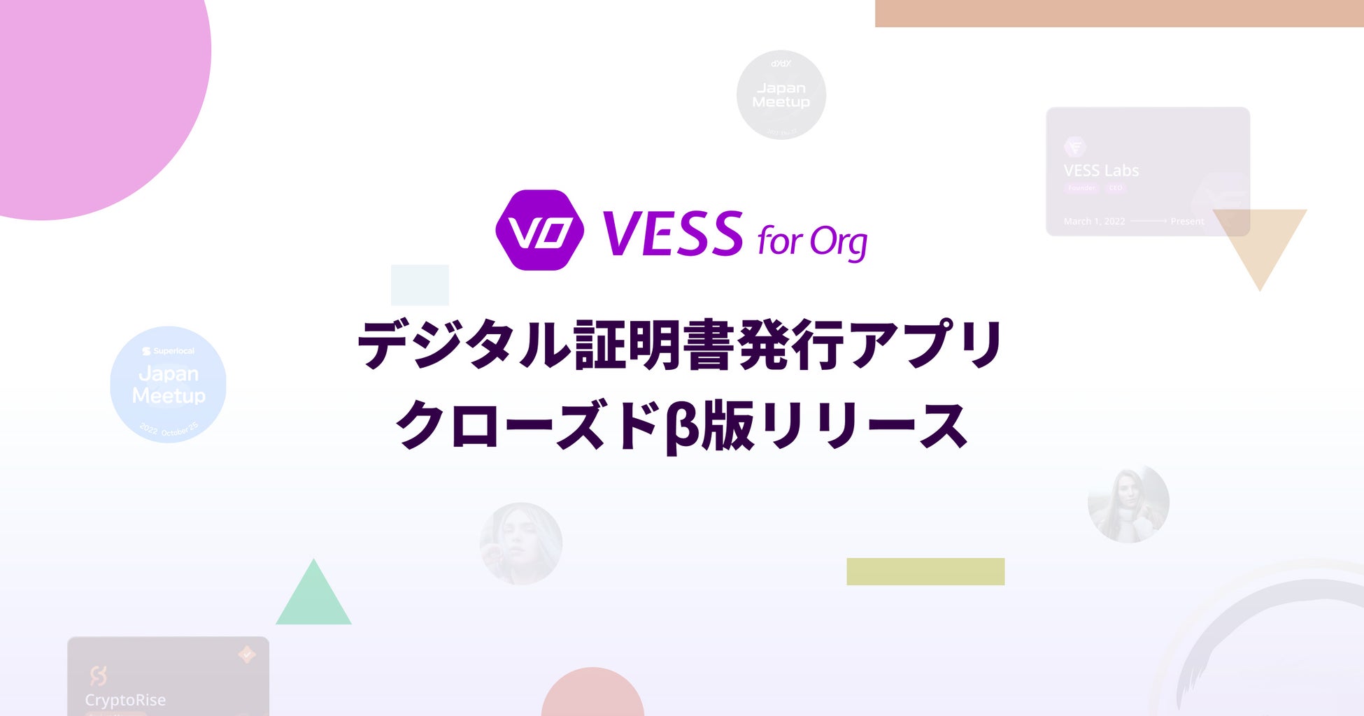 デジタル証明書を発行できる法人向けプラットフォーム〈VESS for Org〉をクローズドβ版で提供開始