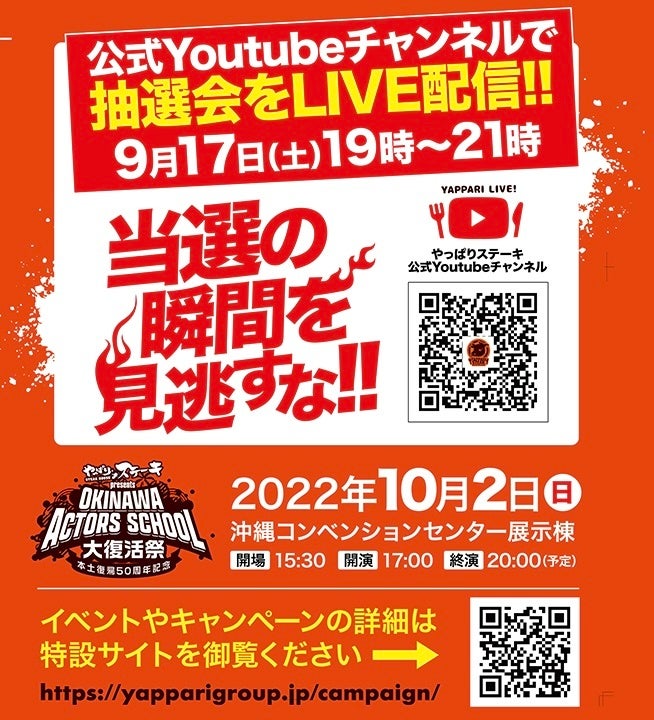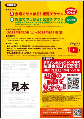 ■ キャンペーン名称 : やっぱりステーキプレゼンツ 沖縄アクターズスクール大復活祭