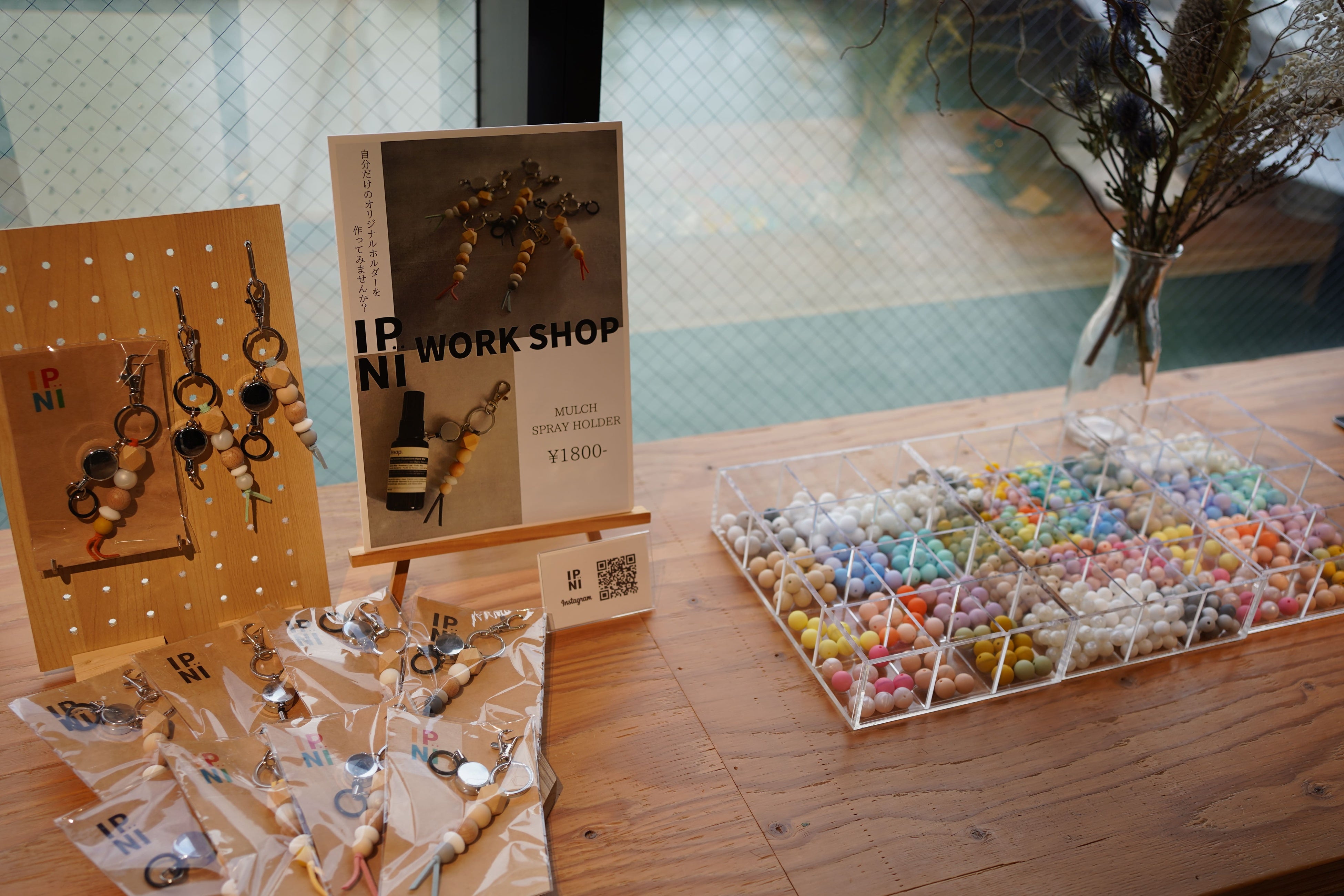 IPNI(イプニ)のブースでは、アルコールスプレーや鍵をおしゃれに持ち歩ける自分だけの特別なホルダーを制作するワークショップなども開催。