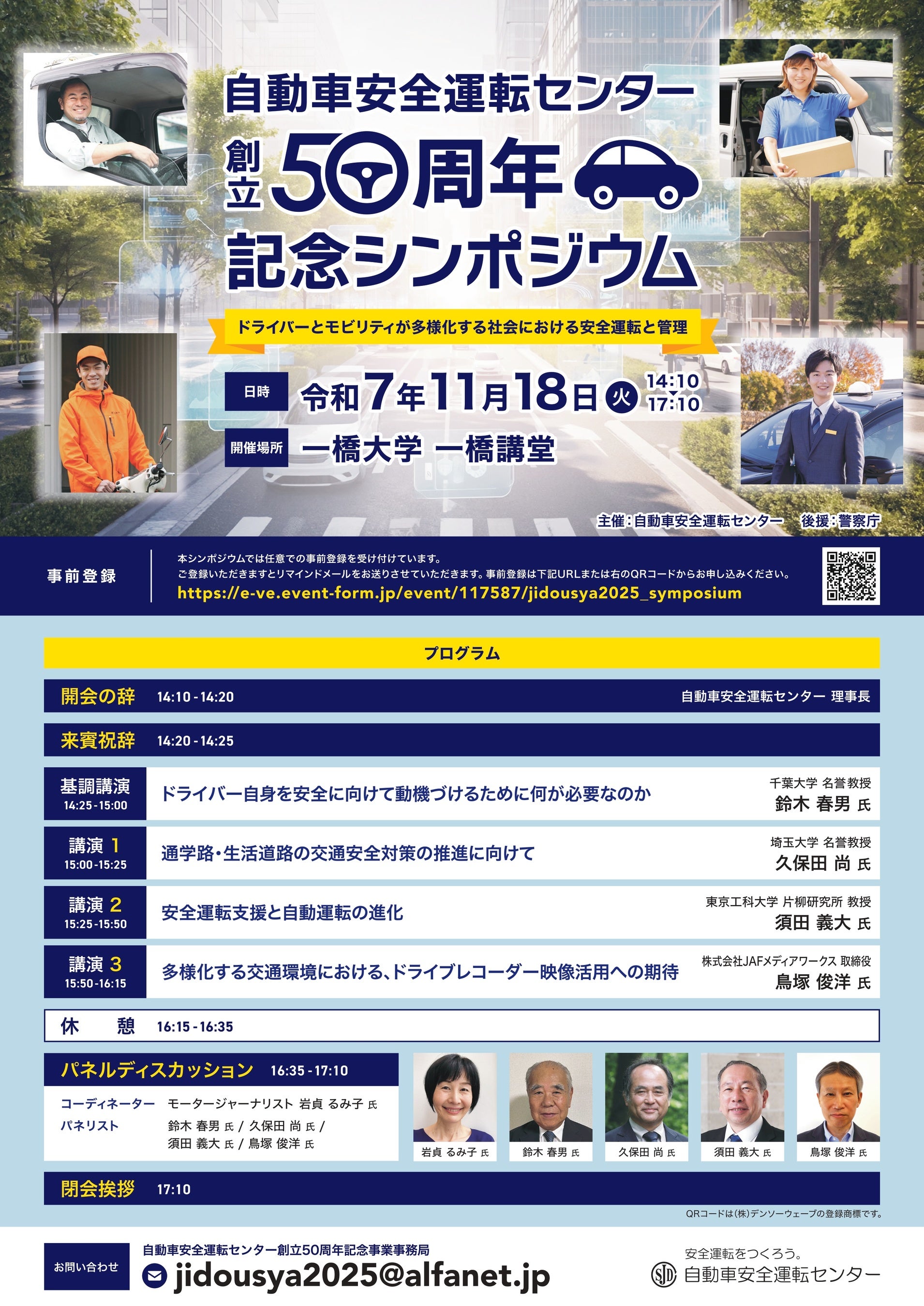 【開催のお知らせ】⾃動⾞安全運転センター 創立50周年記念シンポジウム