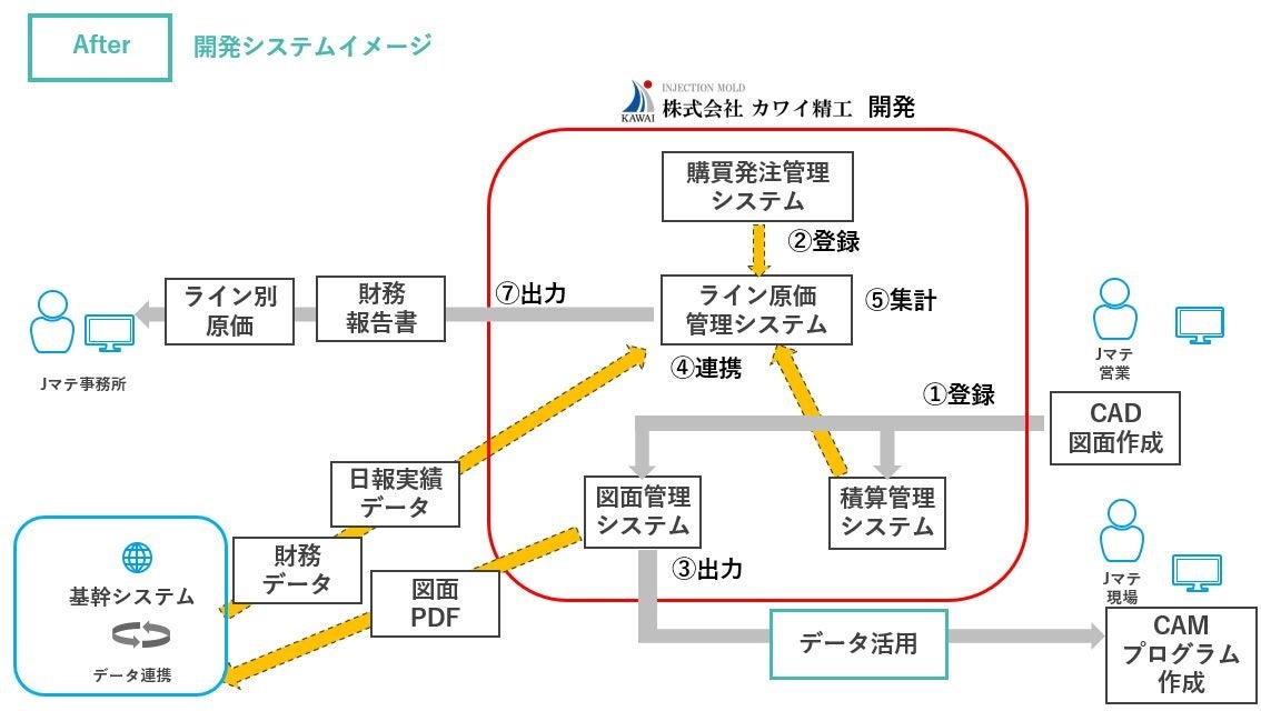 同じ県内の製造業より、製造業ベースのシステム開発を2021年4月より開発・販売している地元上越市のカワイ精工の紹介を受け、カワイ精工の製造現場で使用している購買発注システムや金型の図面管理システムをベースに3つのシステムについてのプラットホームとシステムの共同開発を2025年3月の完成を目標に行うこととなりました。