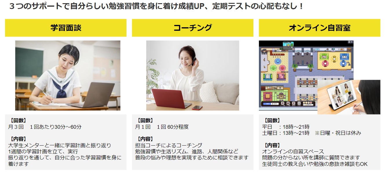 さらに、生徒が自身に向き合う過程で将来について考えることもありますが、従来の塾では進路=大学選びとなっており、進路相談に限界がありました。弊社のコーチングノウハウを提供することで、自己理解を深め、将来のキャリアについても考えるきっかけを提供できると確信しました。