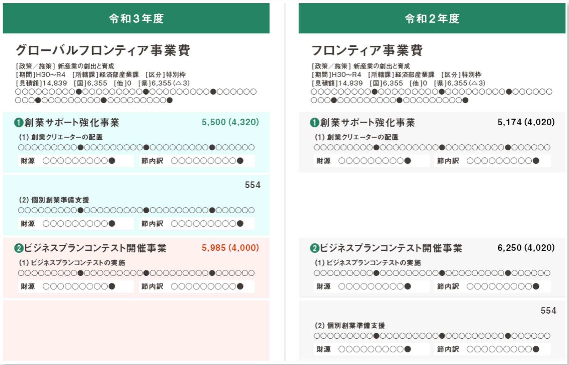 ・予算査定の各段階の資料を要素分解してデータとして蓄積し、横展開を可能に