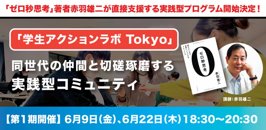 「ゼロ秒思考」赤羽雄二の学生アクションラボ Tokyo の募集開始!(学生対象、50名限定、参加無料)意欲ある学生たちが一堂に会し、互いに切磋琢磨しながら成長を目指す
