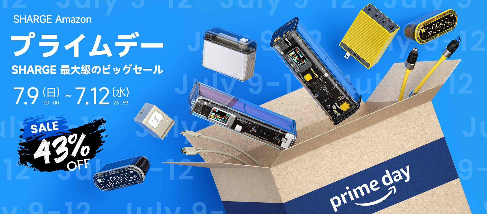 【SHARGE】年に1度のビッグセール Amazon『プライムデー』に最新GaN充電器・高性能モバイルバッテリーなど人気ガジェットが最大43%OFFの大特価!新製品も特別価格で登場!