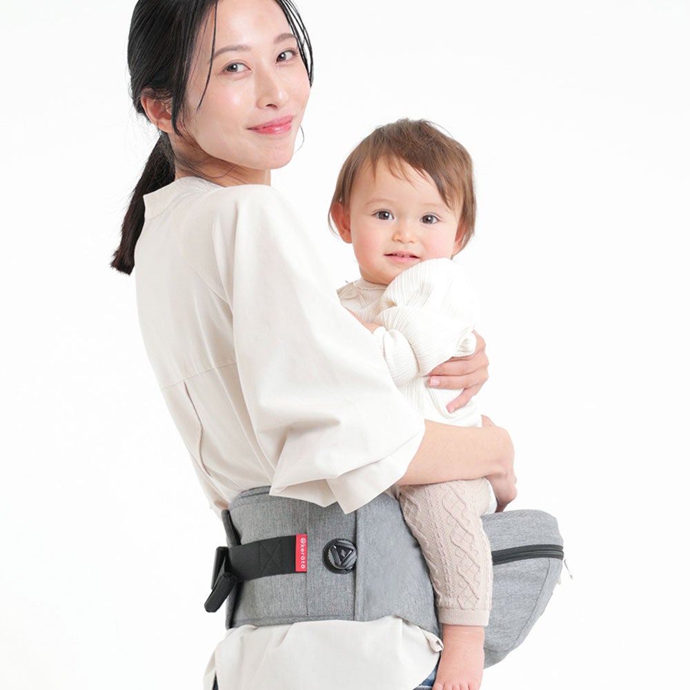 「kerätä」の累計12万個を超えるヒップシートシリーズ「HipGo」から、腰の負担を更に軽減する新製品ダイヤルヒップシート®︎が登場。ダイヤル式でヒップシートがまるで「骨盤ベルト」のようにパパママの体にぴったりしっかりフィット。台座部分には実用新案登録済みのクッションを使用し、下腹部の食い込みも軽減します。