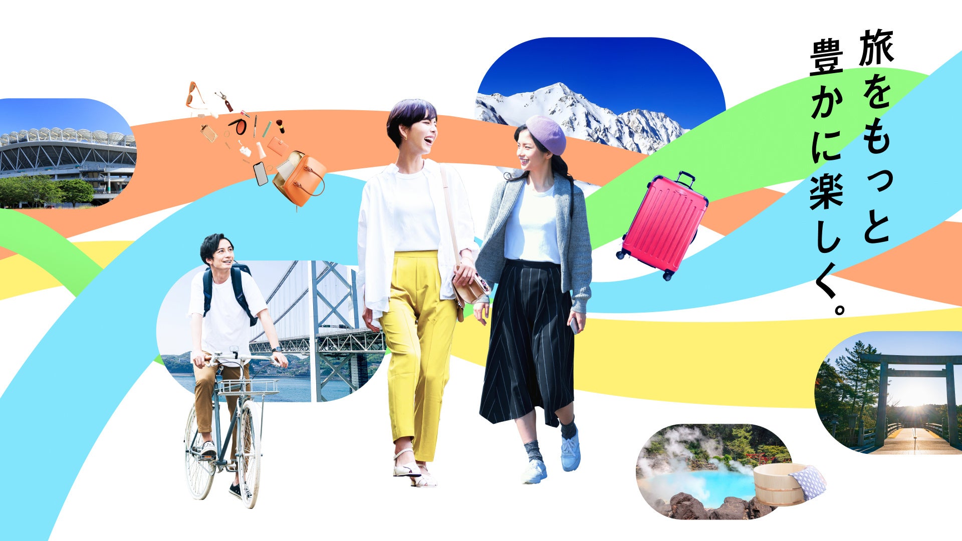 観光地に出向く人がDXを通じてワクワクする気持ちで、人と人との交流で生まれる重なりや、今まで知らなかった歴史を知ることで生まれる重なりを発見し、豊かになることを表現しています。