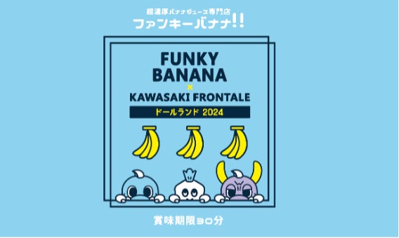 株式会社楽場(本社:兵庫県神戸市、代表取締役:住 一亀)は、2024年4月7日(日)FC町田ゼルビア戦は、「かわさき応援バナナ」「かわさき応援アボカド」でおなじみの「株式会社ドール」様のご協力を得て、「ドールランド春」にて超濃厚バナナジュースのファンキーバナナ!!とサッカーJリーグの川崎フロンターレとの初のコラボレーション商品を販売します。【ファンキーバナナ!!】公式サイトhttps://funky-banana.com/ (外部リンク)