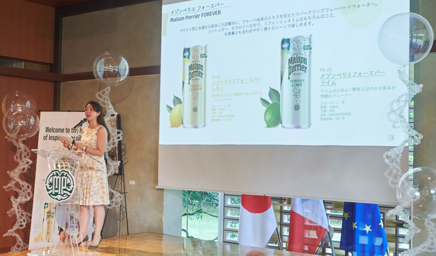 フランス産炭酸入りナチュラルミネラルウォーター「Perrier(ペリエ)」の姉妹ブランドとなる新ブランド「Maison Perrier(メゾンペリエ)」の商品が2024年9月に発売となるのに先駆けて、商品をお披露目する「メゾンペリエ ローンチパーティー」が同年7月にフランス大使館 大使公邸で開催されました。
