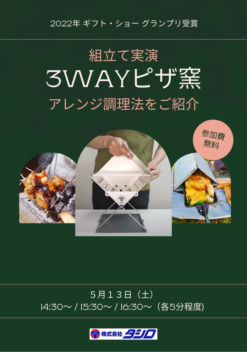 株式会社タシロさんによる3WAYピザ窯の組み立て実演とアレンジ調理法を店頭にてご披露いただきます。