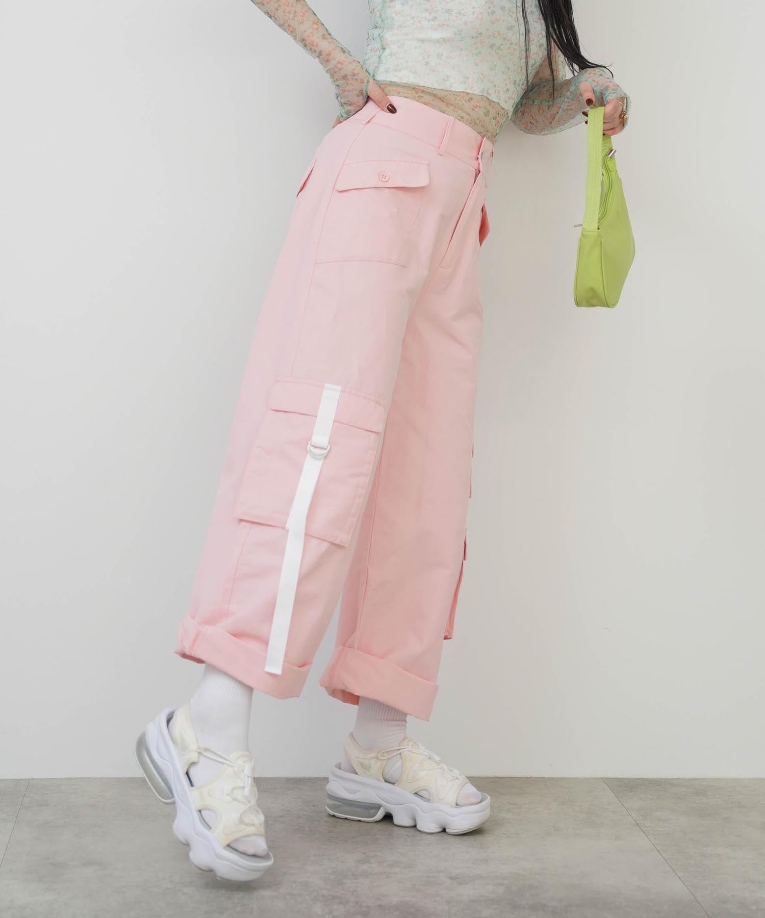 たくさん付いたサイズ違いのポケットがアクセント。ガーリーな色展開にも注目です。