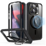 耐傷性に優れたアクリル製背面ケースと衝撃吸収エアガードコーナー、スピーカーダストシールド、強化ガラス製保護フィルム内蔵のタフなスクリーンガード、カメラレンズフィルムが一体となった、360°全面を保護するケースです。隠れスタンド付きで、さらにiPhone 15専用の独立型強化ガラス製カメラレンズフィルムが付属します。