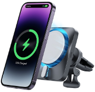 CryoBoost技術を搭載した車載用急速充電器であり、Made for MagSafe認証取得を取得しています。1,200gの強力なHaloLock(TM)マグネットリングが内蔵され、 起伏の多い道路を走行中も、iPhoneを安定的に固定します。ボールジョイントにより、さまざまな角度と向きに設置することができます。本体は、エアコン噴出口クリップを使用してダッシュボードに固定できます。ナビアプリを使用しながらでも最速のワイヤレス充電を実現します。