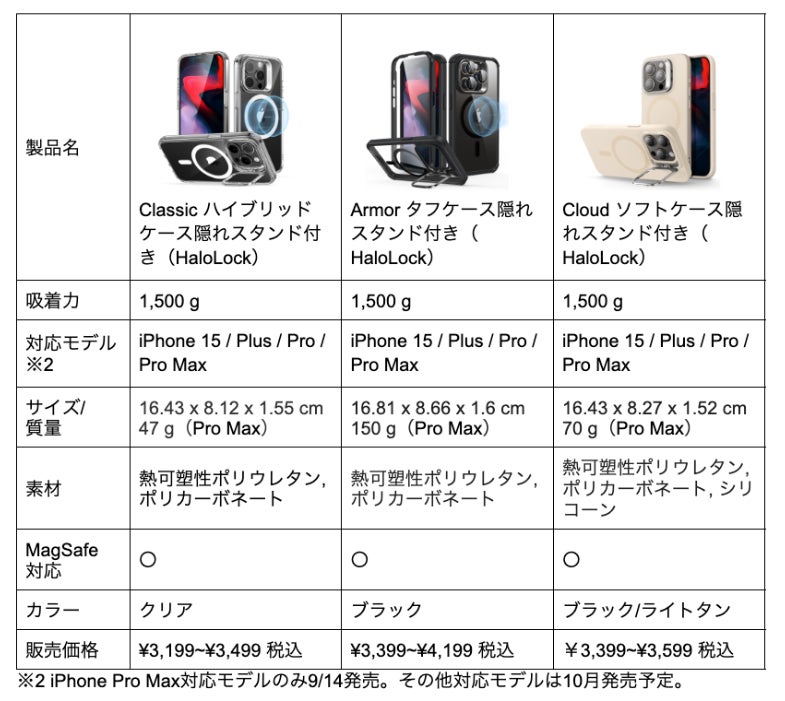 ■ iPhone 15シリーズ対応 HaloLock(TM)ケースの新製品3種