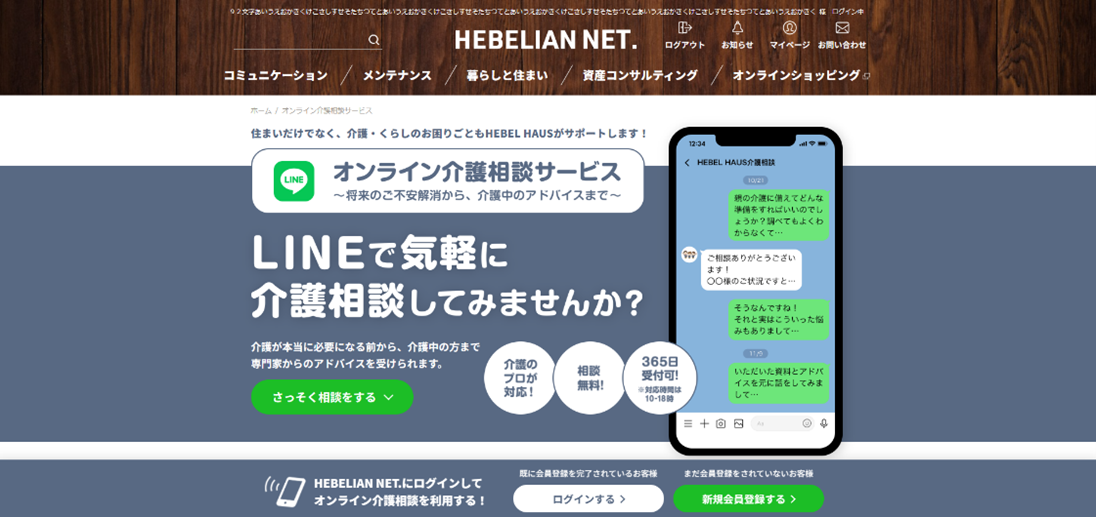 旭化成ホームズ株式会社「HEBELIAN NET.」 オンライン介護相談サービスについて
