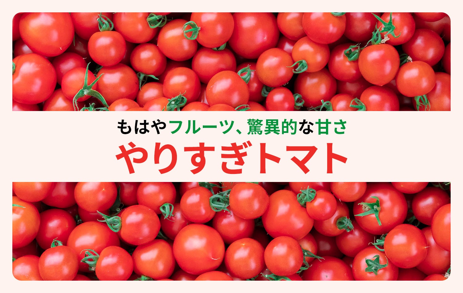 やりすぎトマトは、一見なんの変哲もない甘そうなフルーツトマト。だけど、ひと口でパクッと頬張ってみると、ベリーを想わせる甘さにウットリしてすぐ爽やかな酸味が広がり、キュッと甘さが引き締まります。年2回の収穫時期でも限られたタイミングでしか味わうことができないお取り寄せグルメです。
