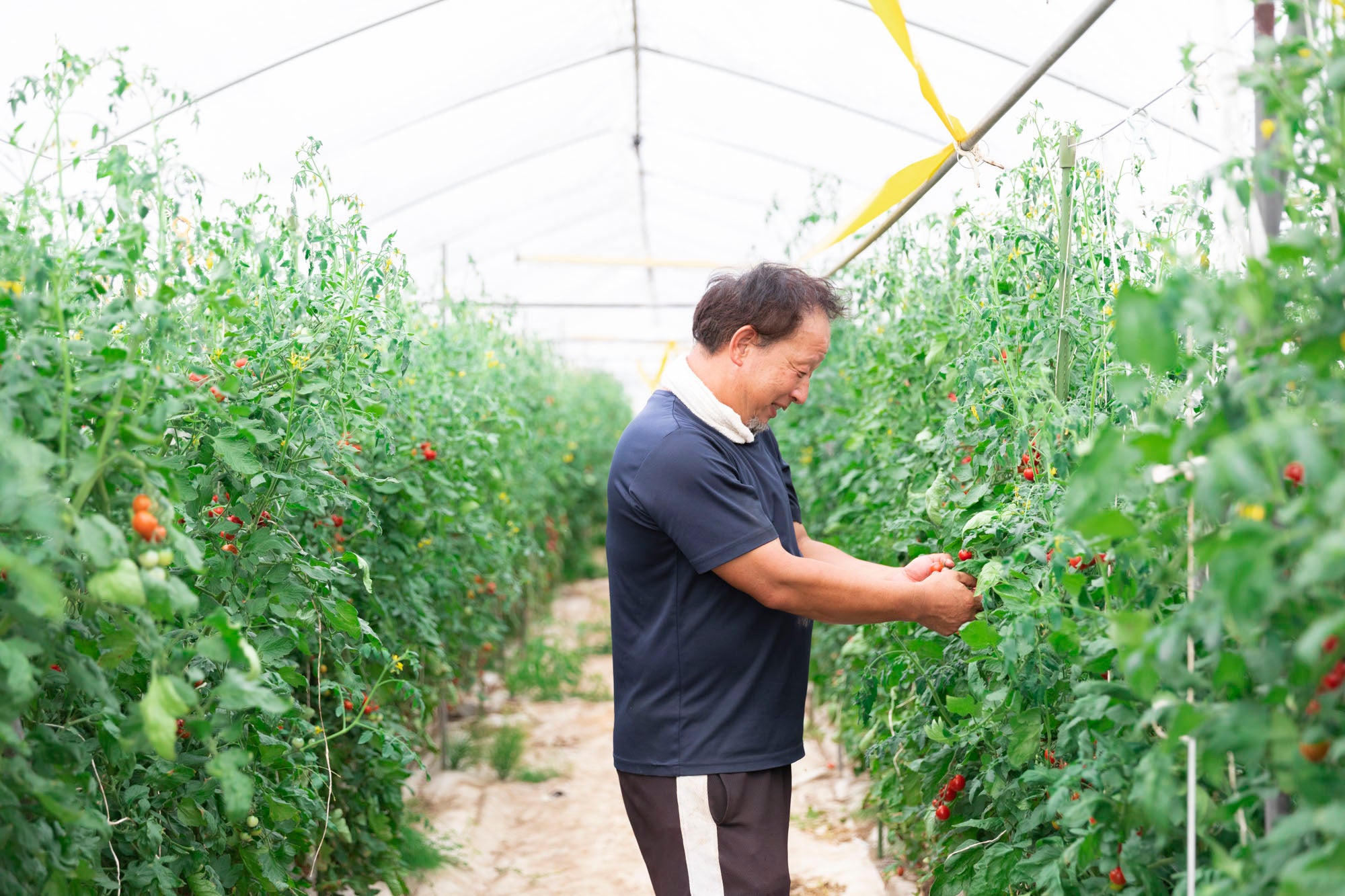 トマトを栽培する時には水分をとことん少なくした、トマトにとっては甘くない環境を敢えてつくり上げることで、トマト自身がカラダを絞り、栄養を蓄えた味は泣けるほど甘く、清々しい酸味に仕上がります。