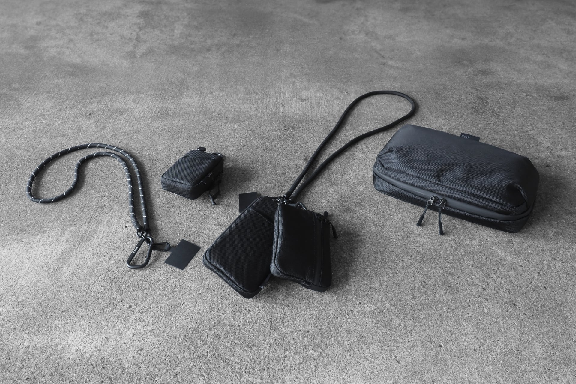 ショルダーストラップ、ミニポーチ、スマホポーチを組合せた三位一体のショルダーバッグ。それぞれアタッチメントとして他のバッグに装着したり、ポーチや小物入れとして単体で使うこともできます。