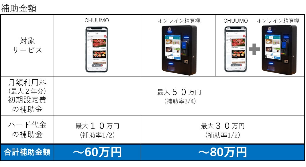 モバイルオーダーシステム「CHUUMO」とオンライン精算機「VMT-700」が「IT導入補助金2024」の補助対象ITツールとして認定されました。