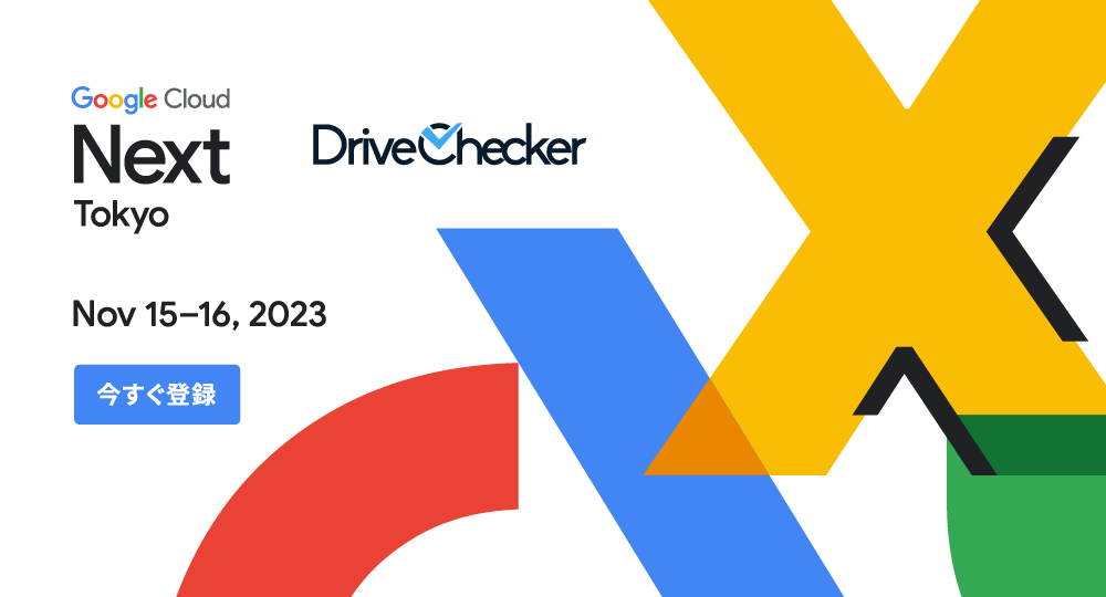 2017 年のサービス開始以降、毎回出展を続けている Google Cloud Next Tokyo に今年も DriveChecker を出展。コロナ禍を経て 4 年ぶりの開催となった今回は、当社初のプラチナスポンサーとして協賛します。