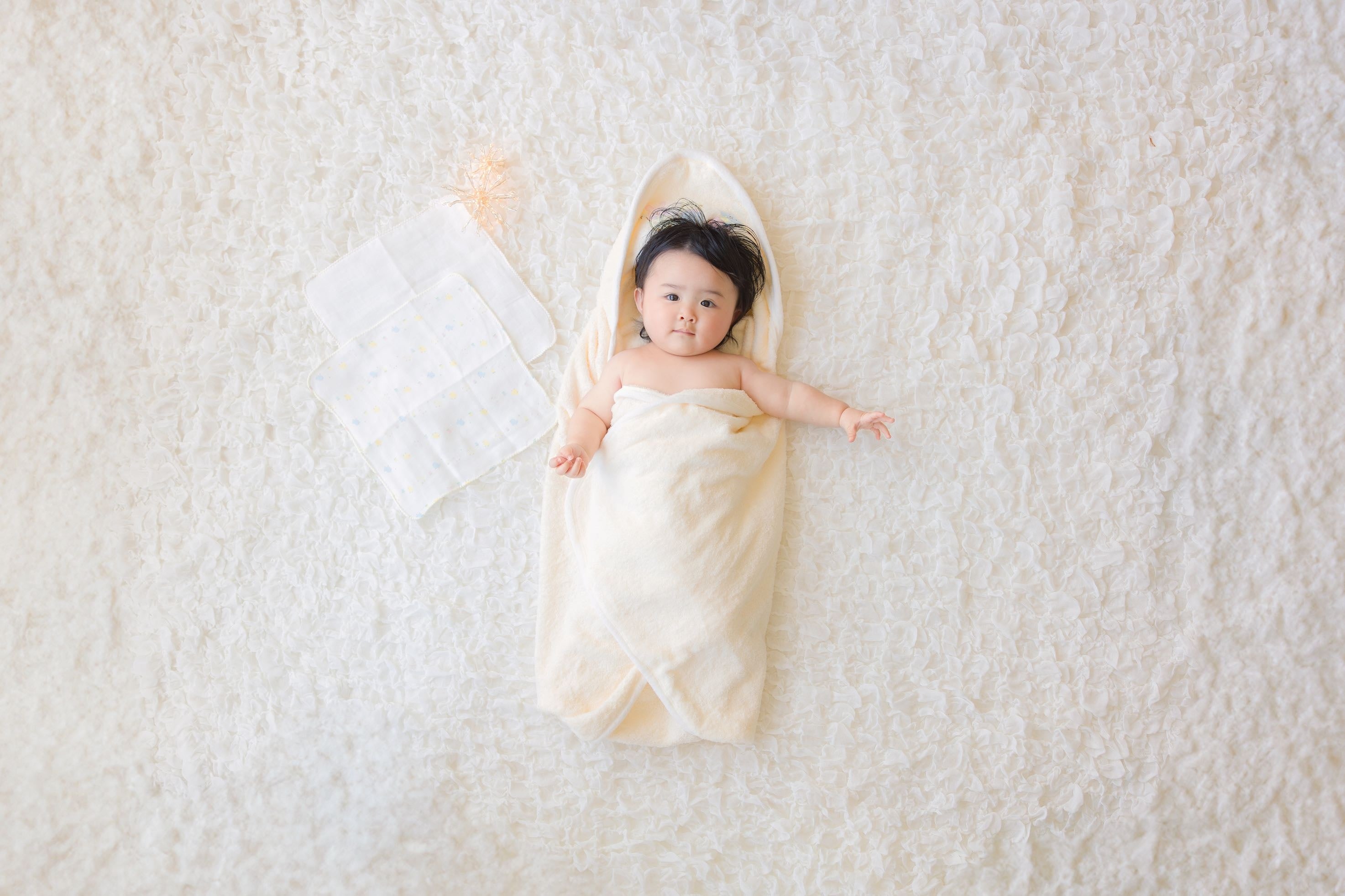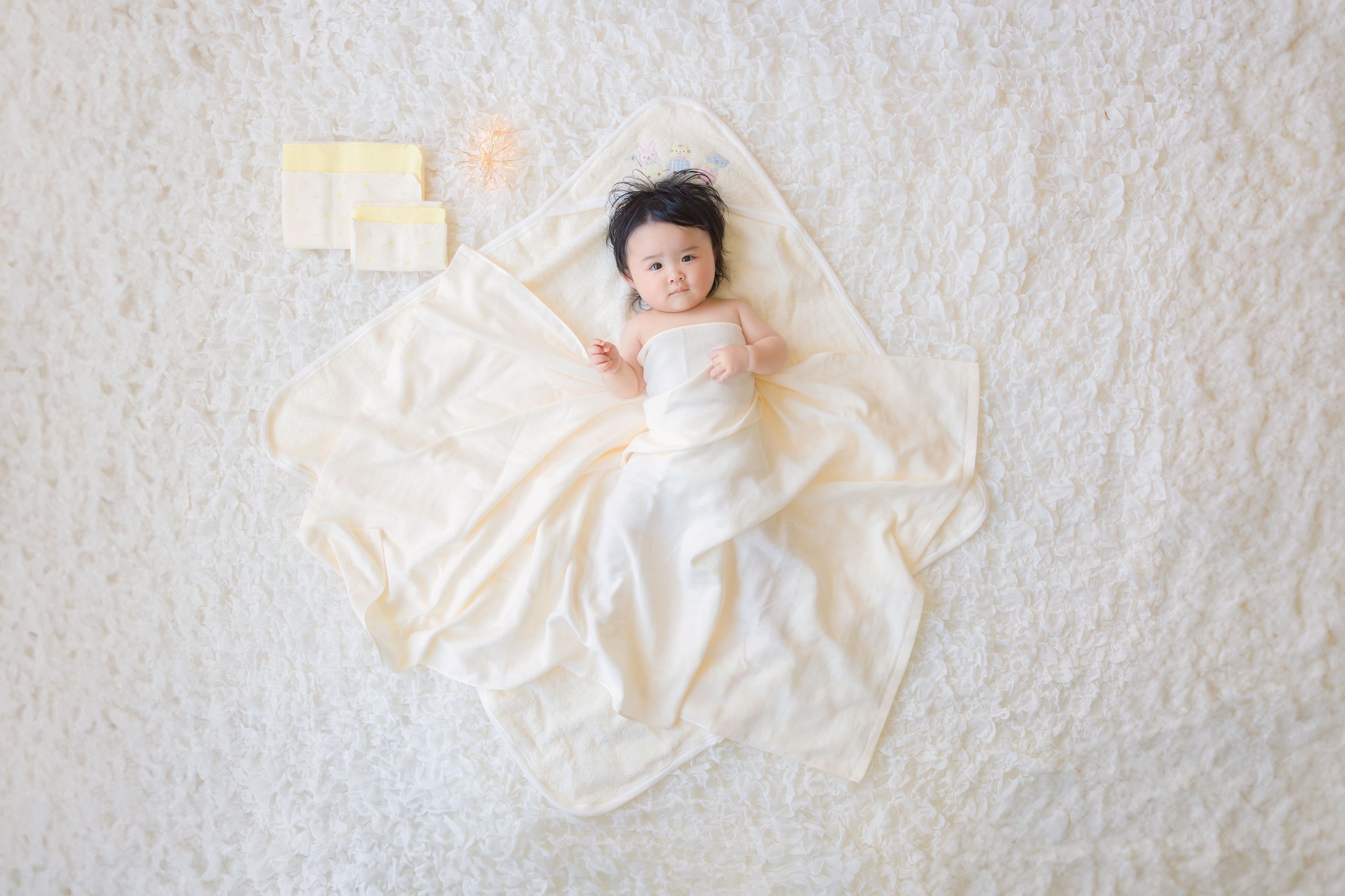 【日本製】赤ちゃんの身長が測れるガーゼタオル。産まれた瞬間や日々の成長の記録に