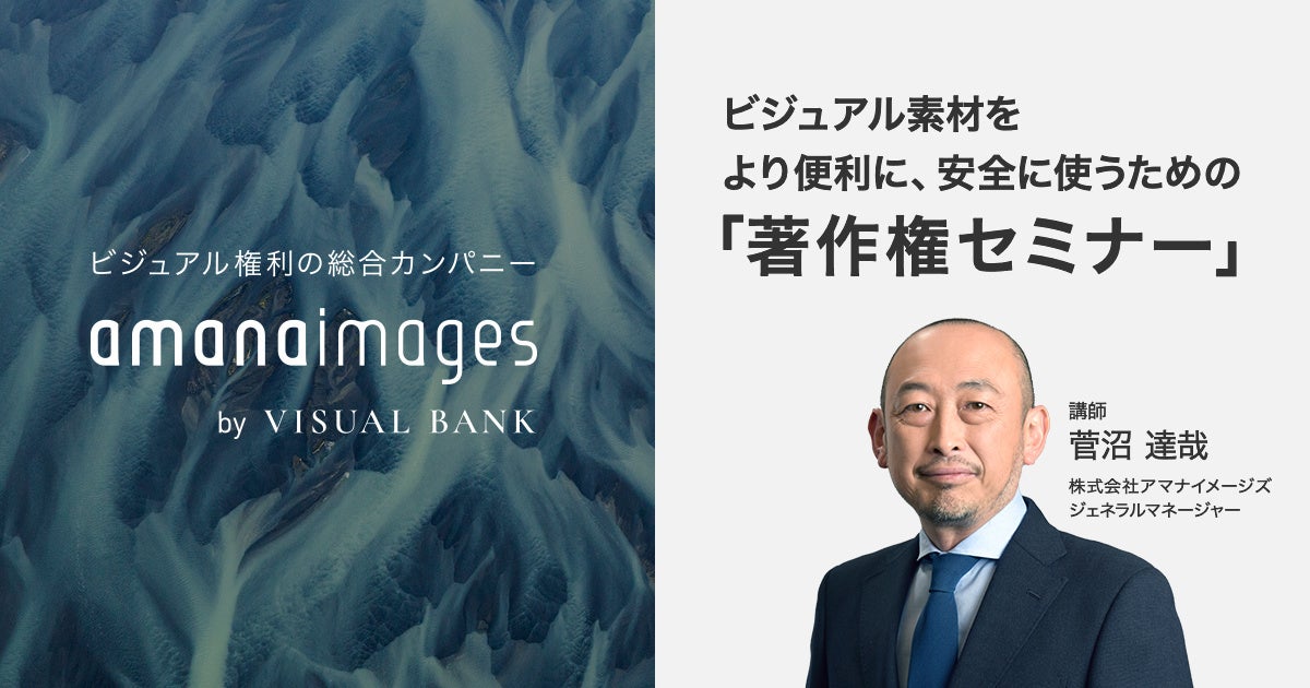Visual Bank株式会社(代表取締役:沼澤裕太、以下『Visual Bank』)の100%子会社で、国内最大規模のストック素材販売サイト『amanaimages.com』を運営する株式会社アマナイメージズ(以下アマナイメージズ)は、新タグラインを制定し、企業やクリエイティブ従事者に向けたビジュアルの適切な扱い方、著作権に関するセミナーを開始いたしました。