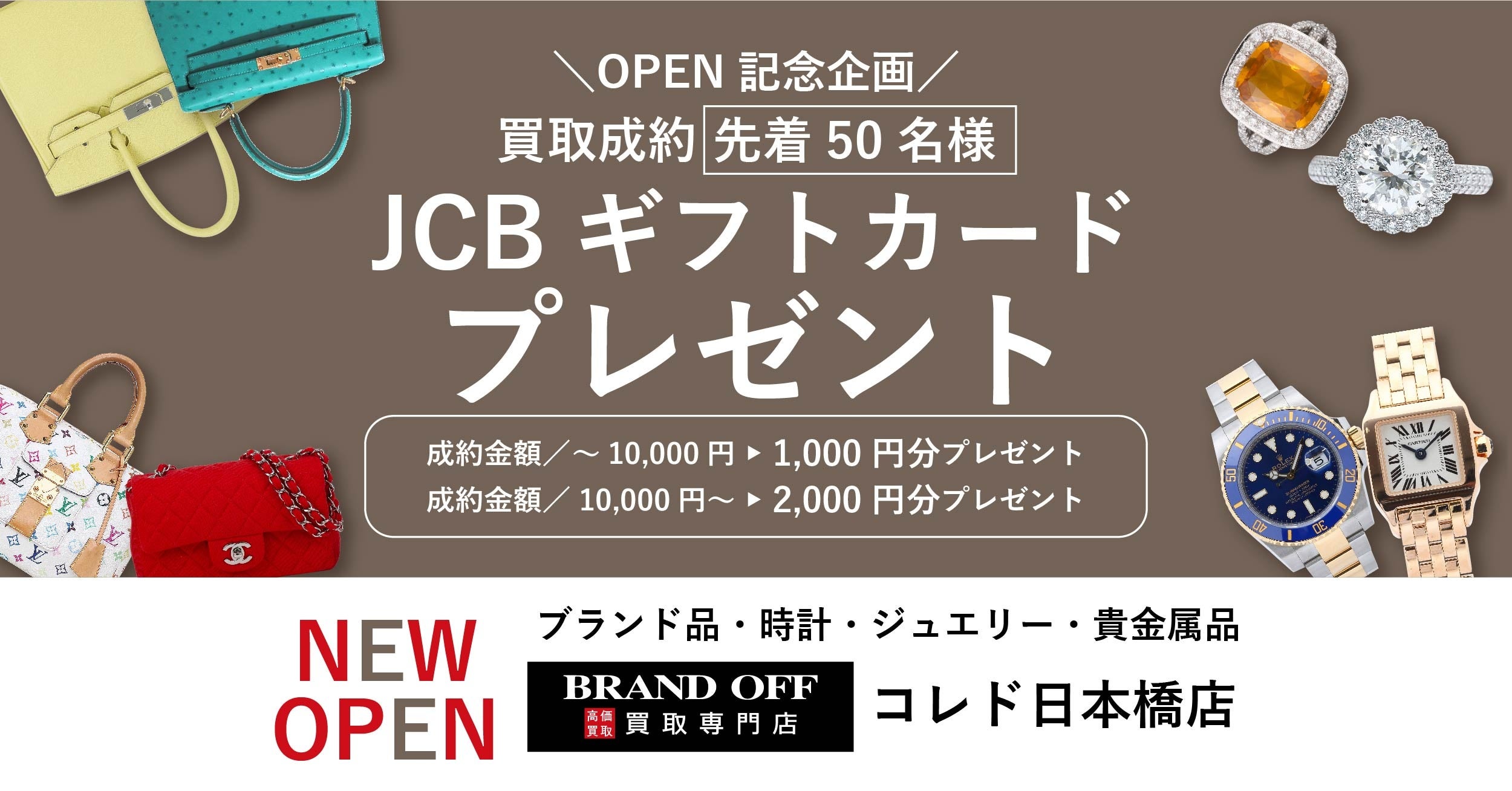 買取成約でJCBギフトカードをプレゼントするオープニングキャンペーンを数量限定で実施