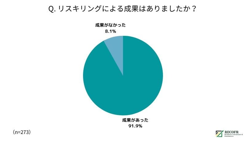 リスキリングに取り組んだことで「成果があった」と実感している方は91.9%と高い水準でした。