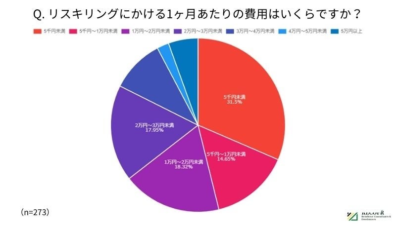 - リスキリングにかける費用は、1ヶ月あたり「5千円未満」が最も多い