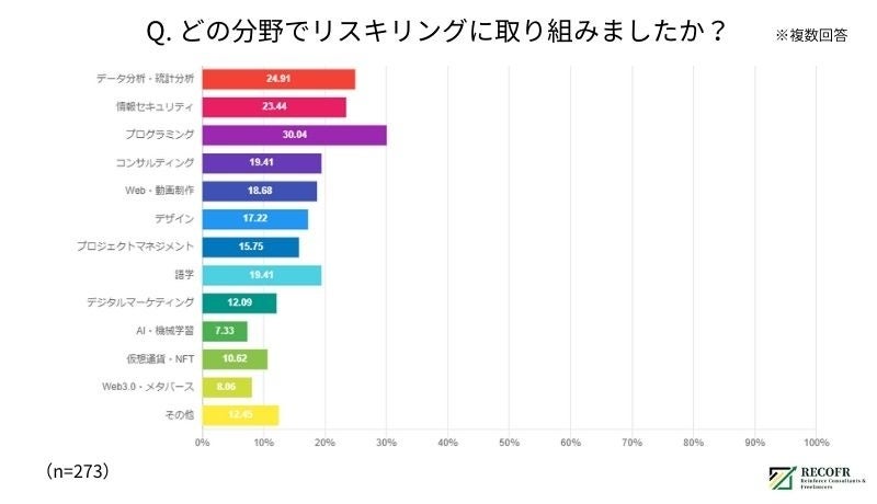 リスキリングに関するアンケートレポート:フリーランス・副業・複業人材の27%が既に「リスキリング」を実施済みと回答。人気スキル第一位は「プログラミング」、オンラインでの効率的な学習が成功の鍵
