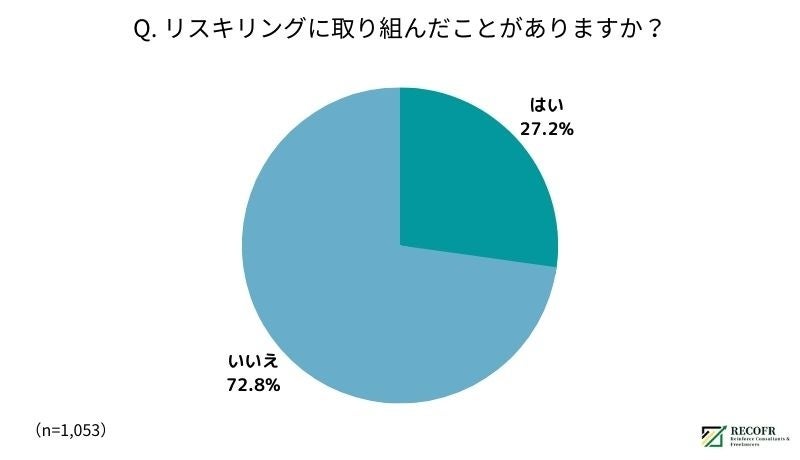 調査では1,053名のフリーランス・副業・複業人材のち、27.2%が「リスキリングに取り組んだことがある」と回答しました。