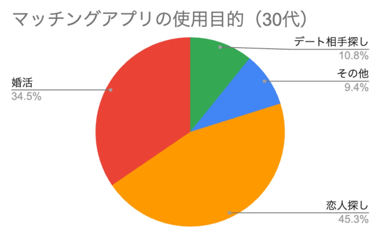年代別に見ると、20代は「恋人探し」が69.1%を占めるのに対し、30代は「恋人探し」45.3%、「婚活」34.5%と、結婚への意識が高まりが明確に現れました。