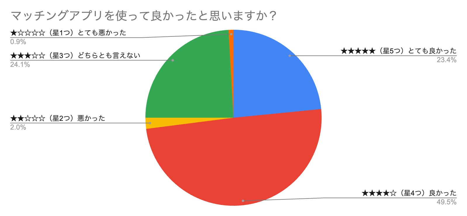 マッチングアプリへの満足度72.9%(星4つ以上の評価)