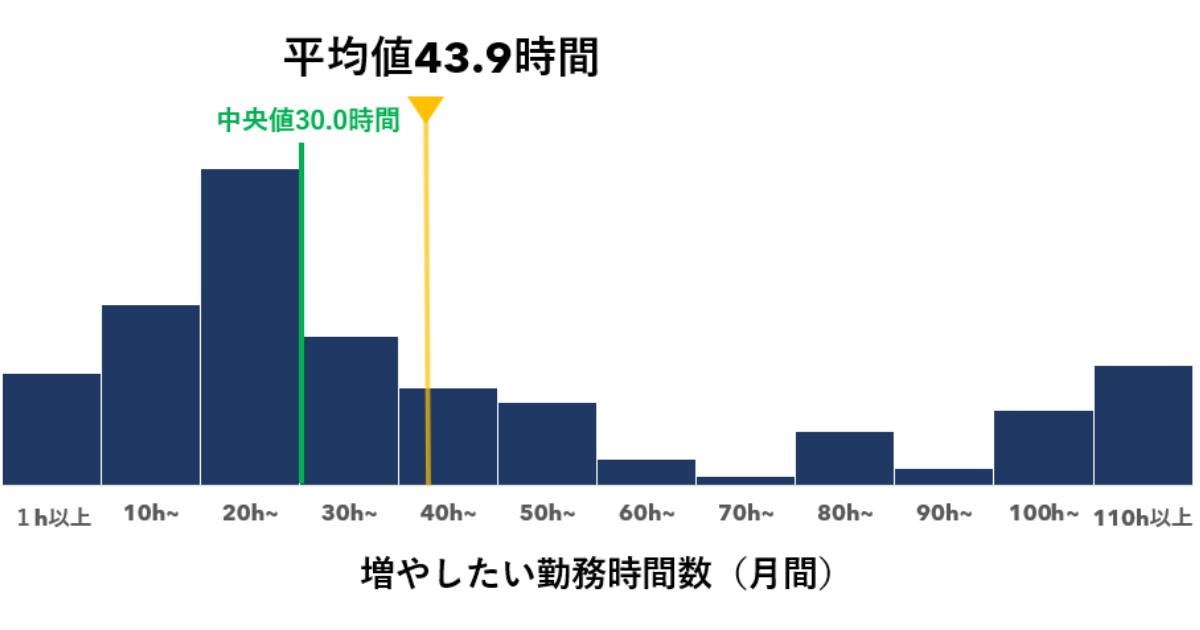 働き損が解消された場合、平均で月間43.9時間の勤務時間増を希望
