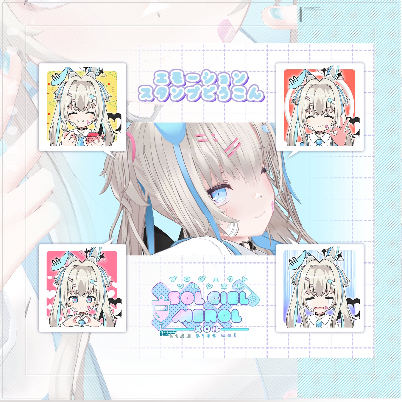 『メロル』には多種多様な表情に加え、衣装チェンジが可能な着せ替えアニメーション、VRChat内で実際に使うことができるアバターペン機能、コミュニケーション時に使いやすいエモーションスタンプ機能等、たくさんの機能が搭載されております。