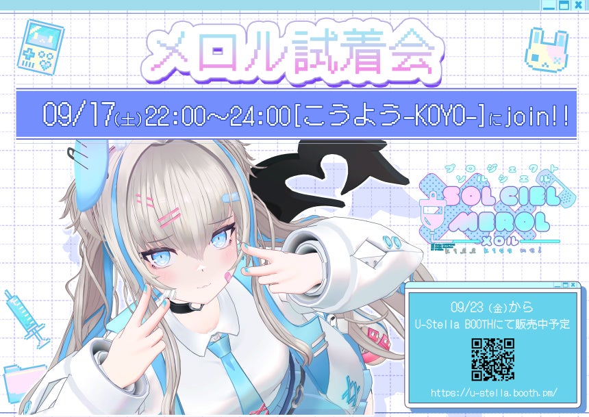また、発売前にモデルをお試ししていただけます『メロルちゃん試着会』もVRChat内にて、9月17日(土) 22時~24時に開催予定です!