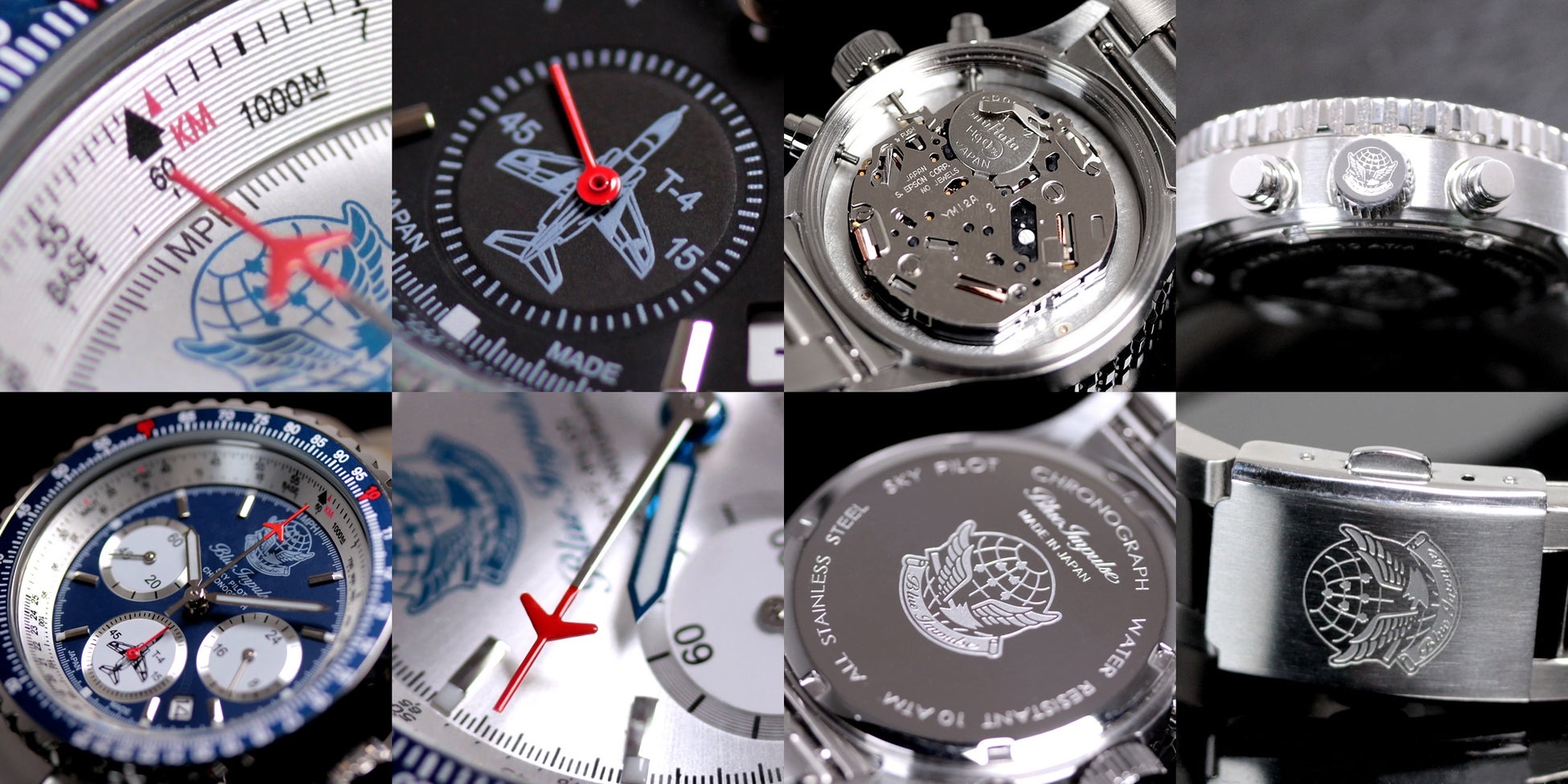 航空自衛隊 70周年記念プロジェクト!ブルーインパルス スカイパイロットクロノグラフ日本製腕時計