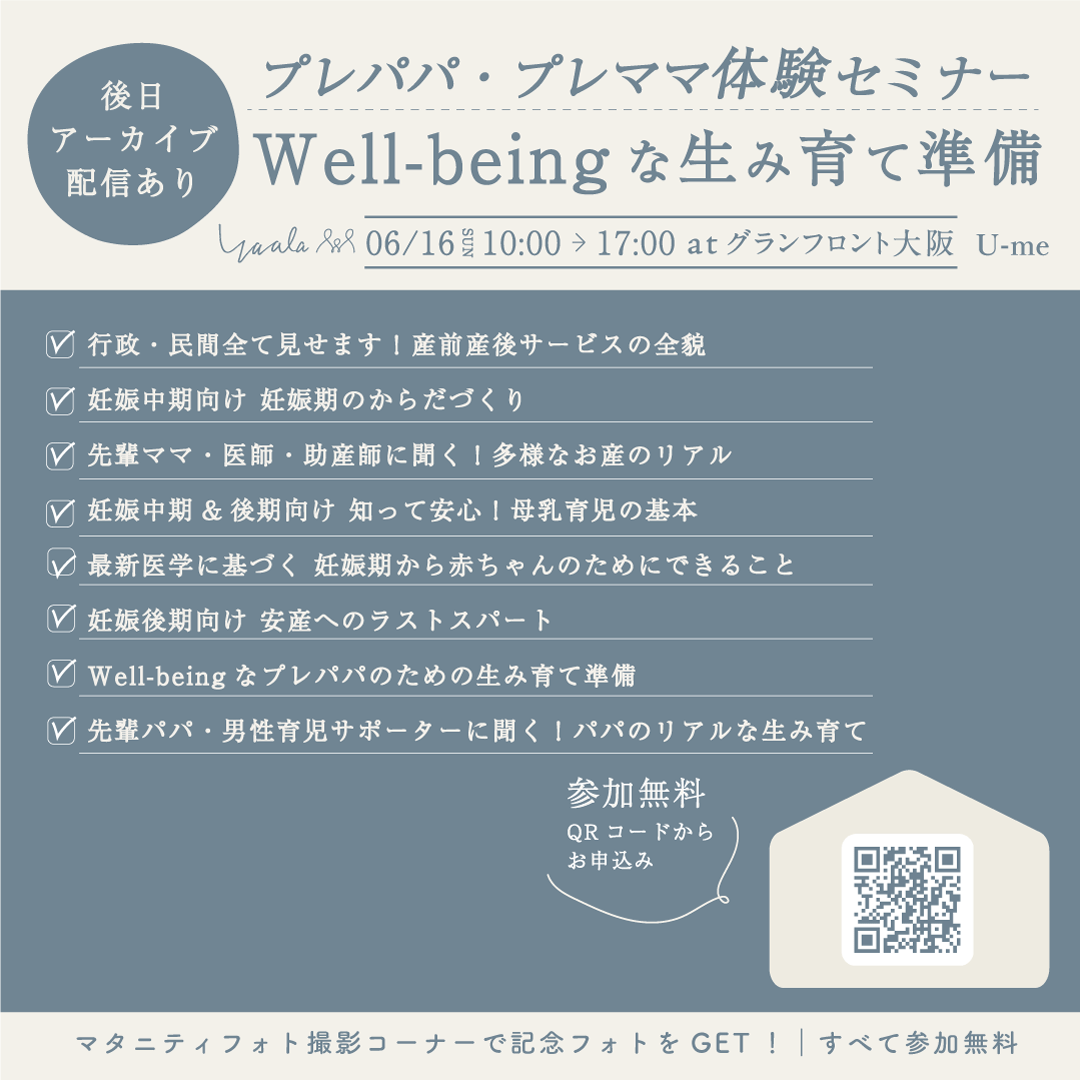 ⑦14:45-|Well-beingなプレパパのための生み育て準備|後日アーカイブ配信(現地申込み)あり