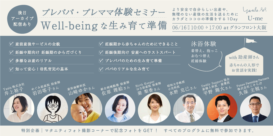 病院のお産、無痛分娩、助産院のお産、自宅分娩。多様化するニーズからお産の選択肢も増えています。一方で、誰にでも起こり得る帝王切開という選択。多様なお産の経験者と、そのサポートをする専門家から、それぞれのリアルを見出し、Well-being(幸せ)な生み育てを実現するための準備について考えます。