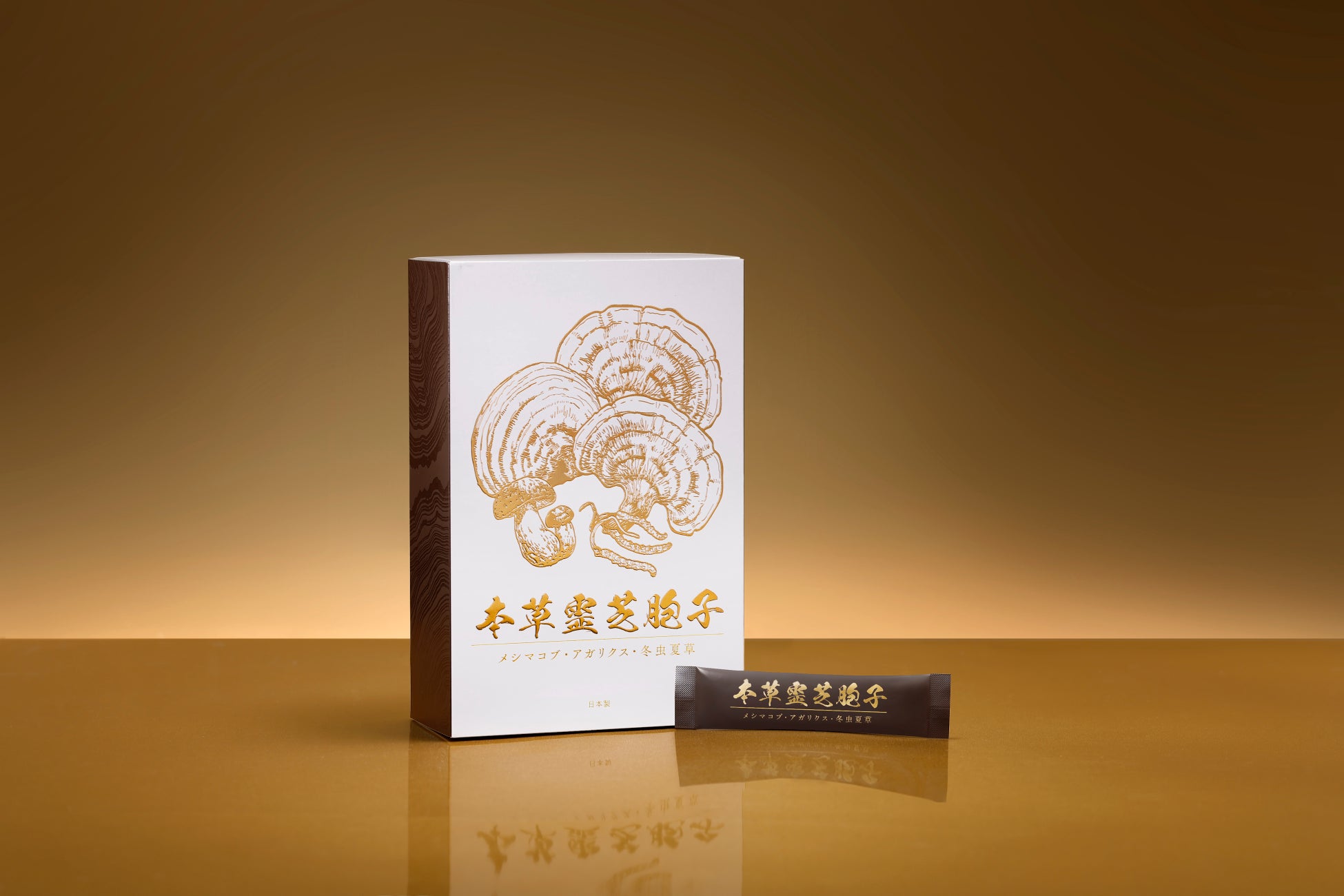 生薬の質に注目した霊芝胞子 漢方サプリメント。1830年創業の本草閣による監修・厳選のもと、貴重な国産(長野県)霊芝胞子の1包1000mgを主成分に、メシマコブ(桑黄)、アガリクス(姫松茸)、冬虫夏草を配合しています。