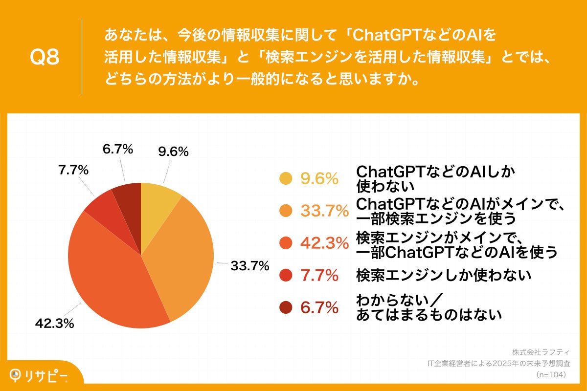 今後の一般利用、「検索エンジンがメインで、一部ChatGPTなどのAIを使う」が42.3%で最多