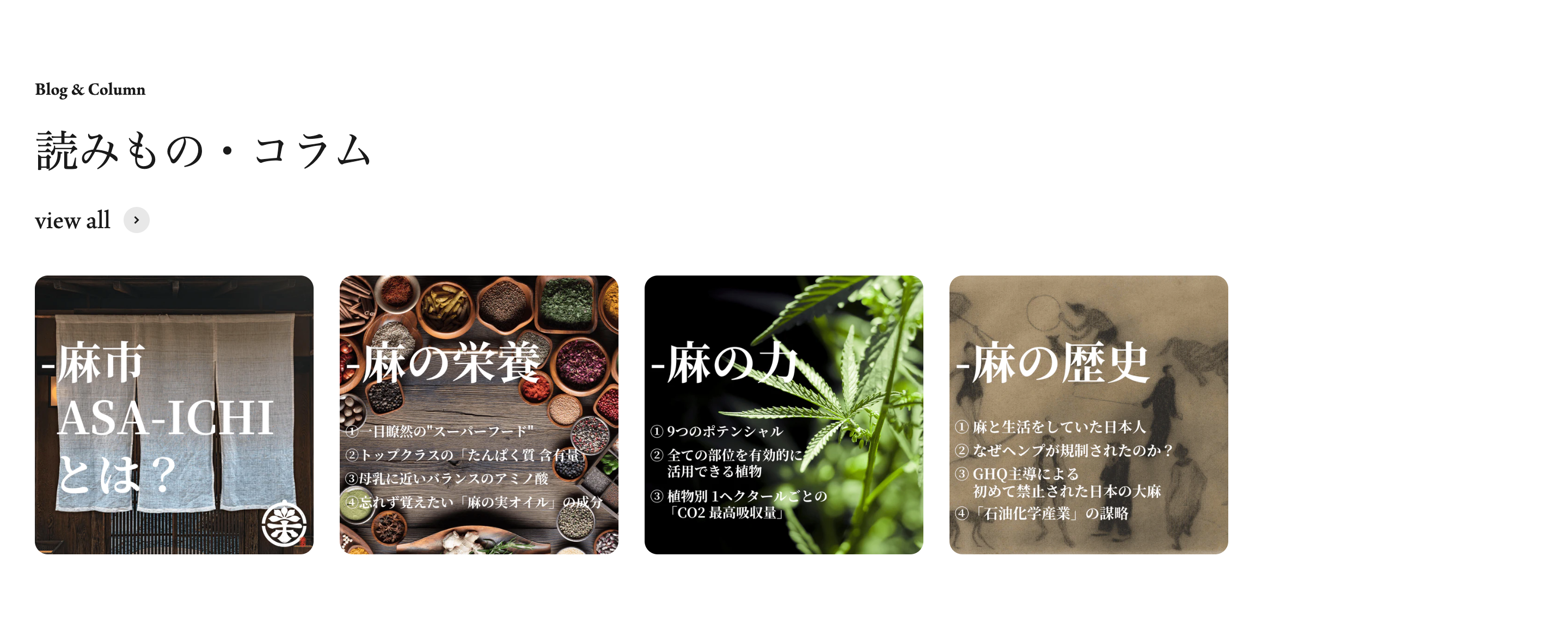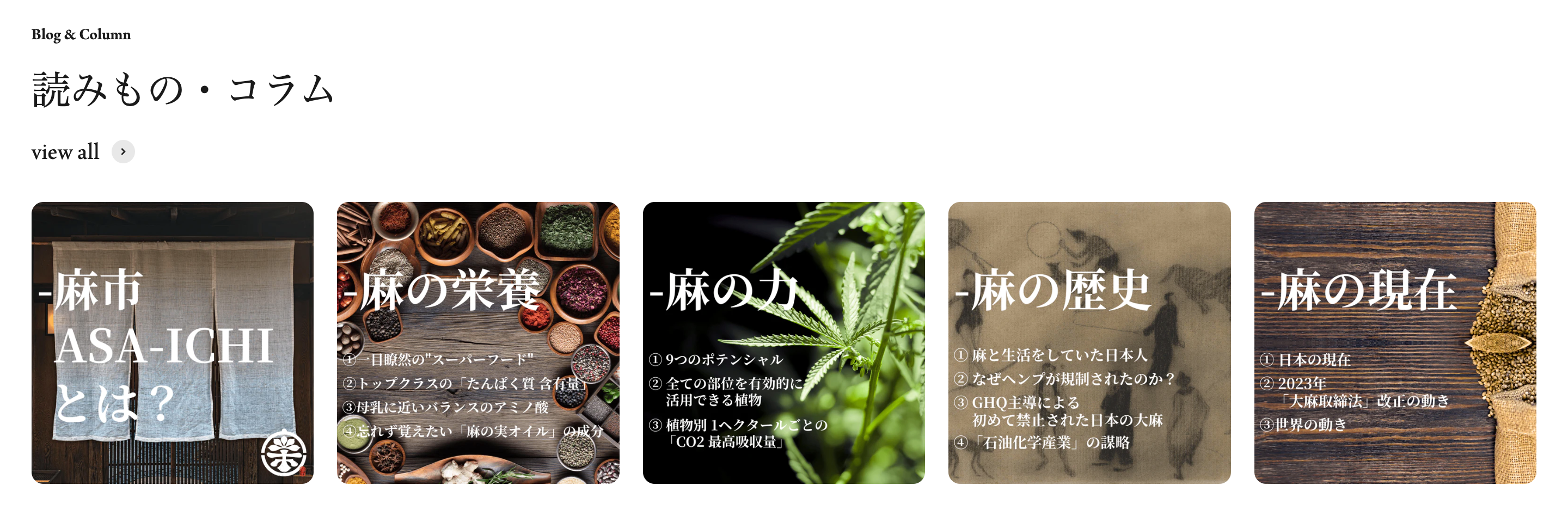 ・「読みもの/コラム」と題し、様々な角度から麻情報を発信