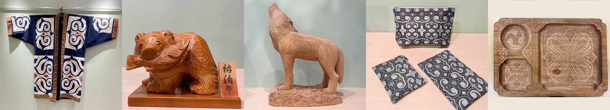 北海道のアイヌ工芸家が作る木彫や刺繍など作品の数々を期間限定で販売いたします。