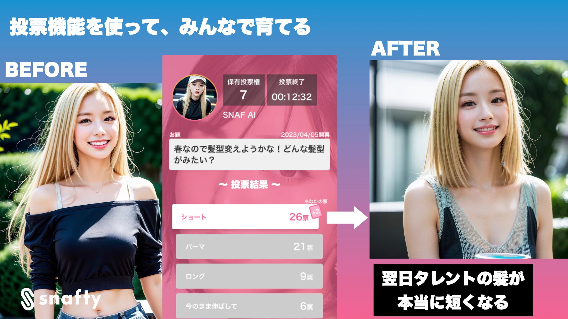 髪型や髪色を変えたり、新しい趣味を始めさせたり、今までにないAIとのエンターテインメント体験を提供します。