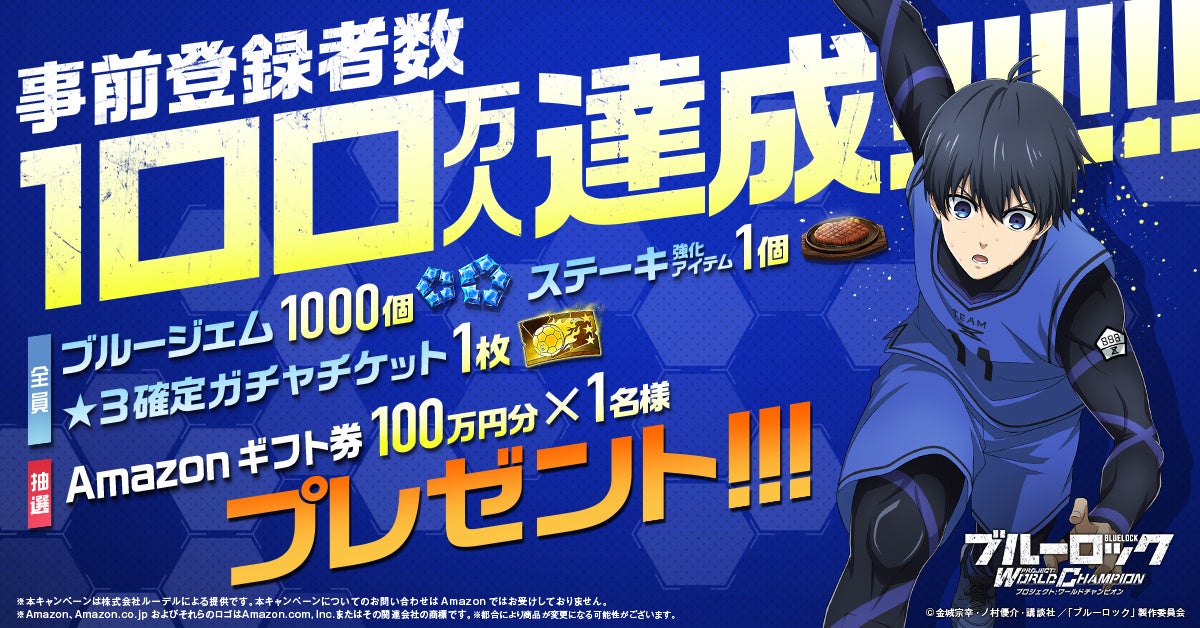 三笘薫選手TVCM出演中!新作ゲーム『ブルーロック プロジェクト:ワールドチャンピオン』の事前登録者数が100万人を達成!!