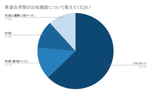 このことから、プロジェクトや企業によって、2割程は出社頻度を調整したい層がいることが伺えます。