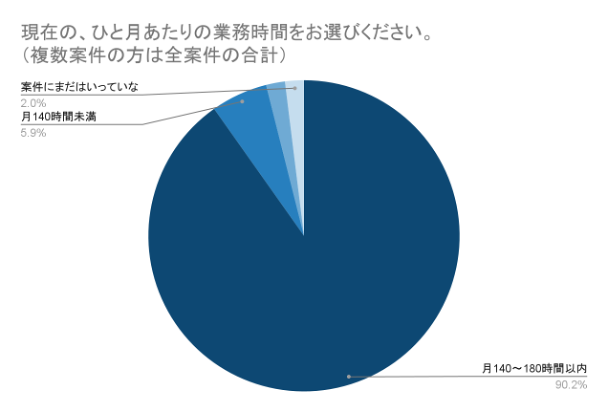 正社員・契約社員、フリーランスと属性にかかわらず、概ね140時間〜180時間の勤務時間であることが分かりました。